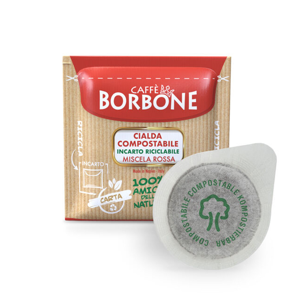 Cialde compostabili, in formato ESE da 44 mm, prodotte da Caffè Borbone.